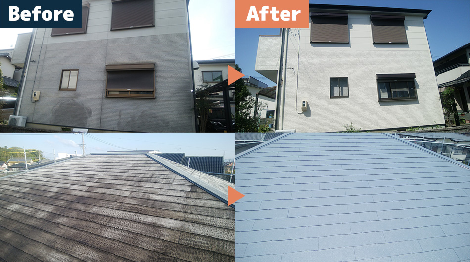 外壁と屋根の塗装工事、シーリング工事をいたしました。