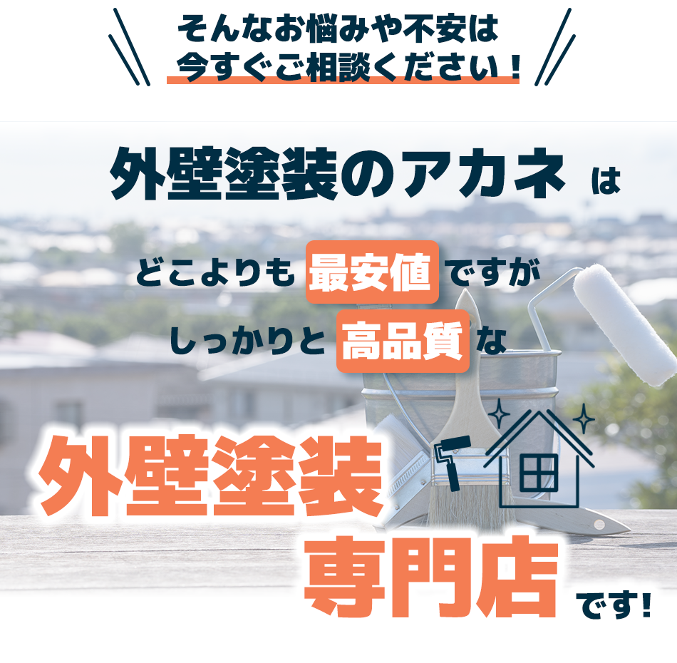 アカネ塗装は少数精鋭の職人による外壁塗装専門店です。そのため、高品質かつ効率的な作業を低コストで提供いたします。