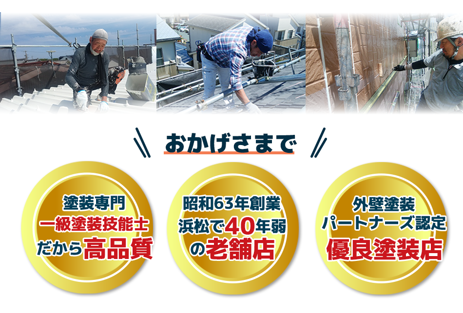 アカネ塗装は創業昭和63年。浜松の外壁塗装専門店として長年お客様にご愛顧いただいております。