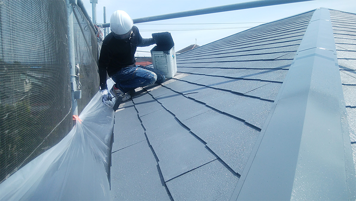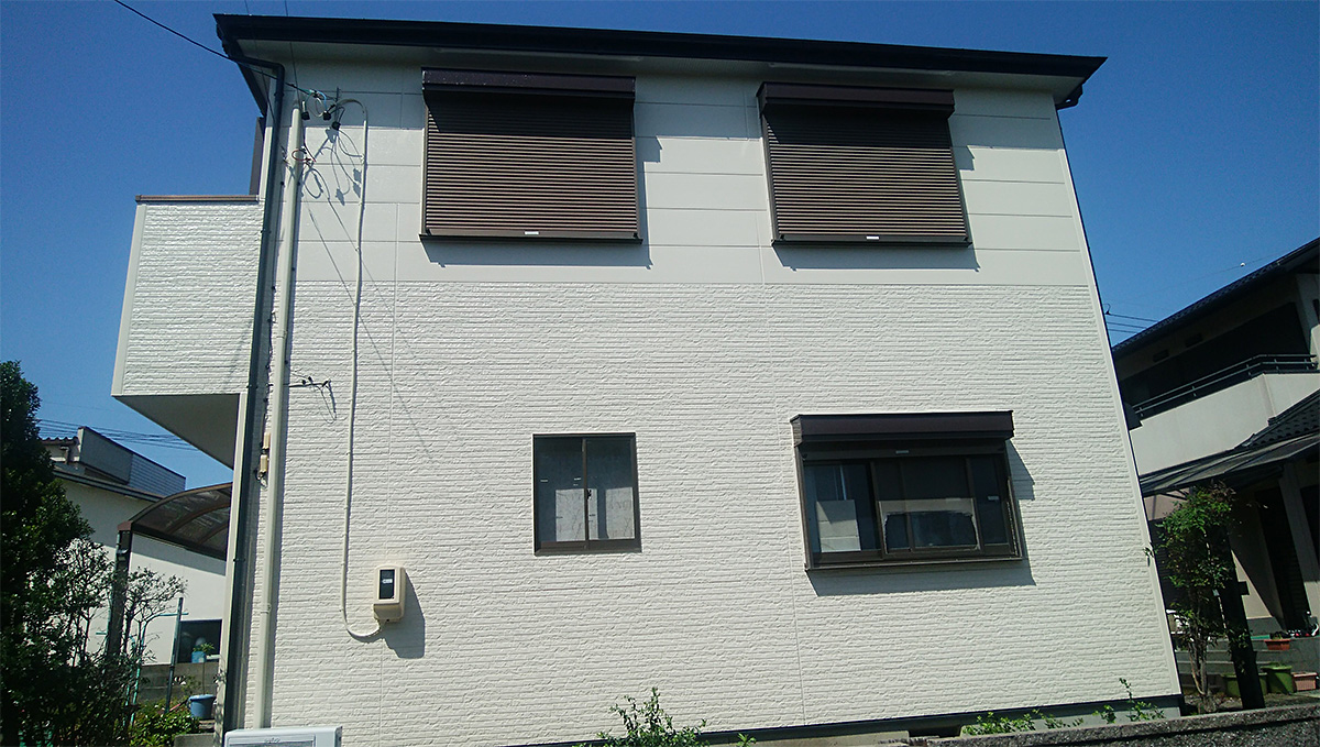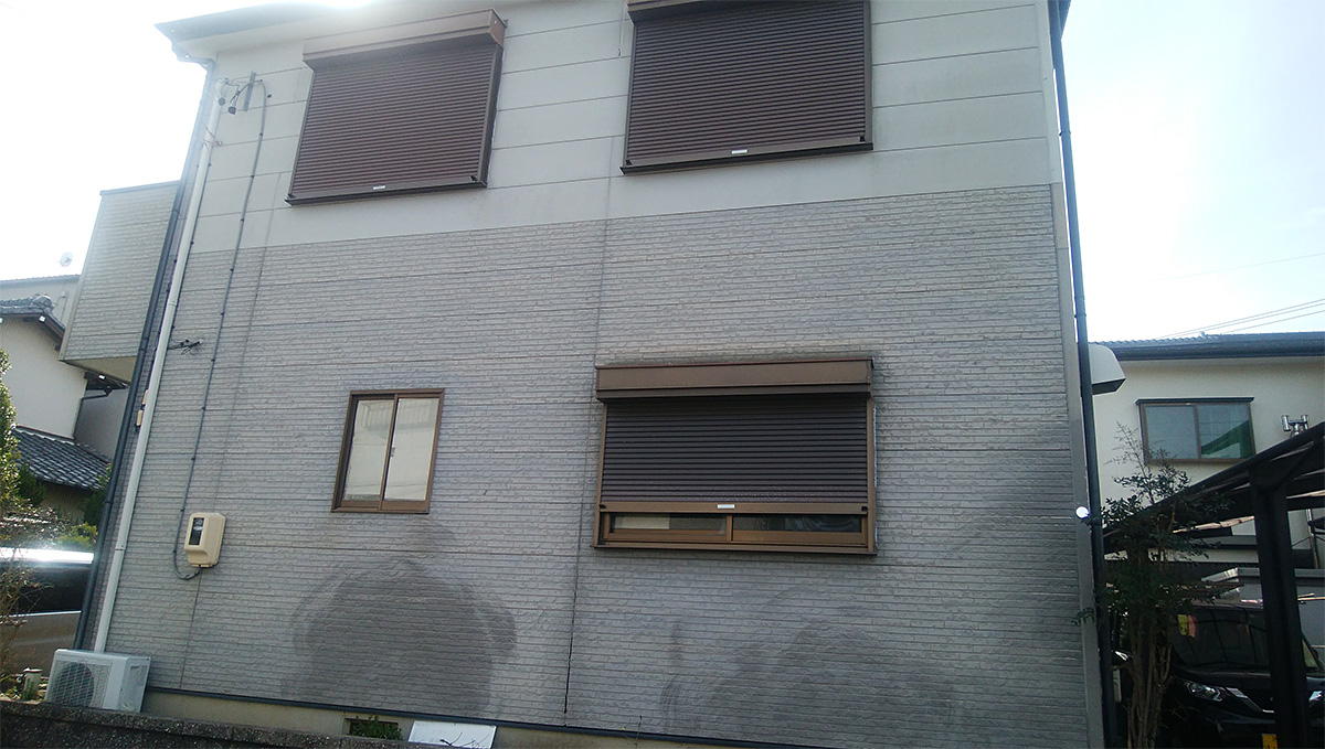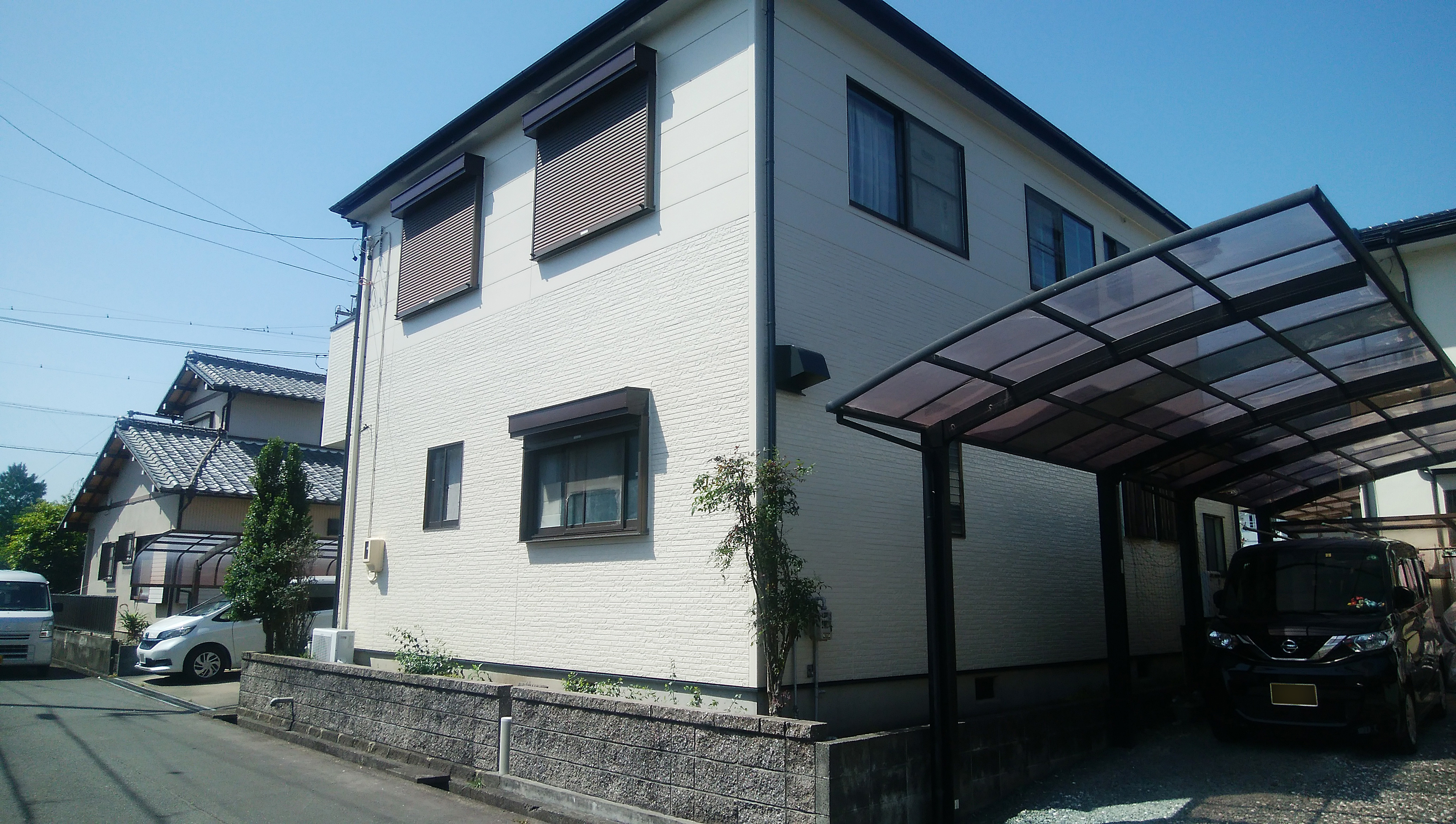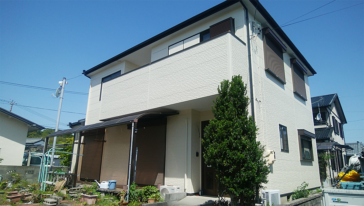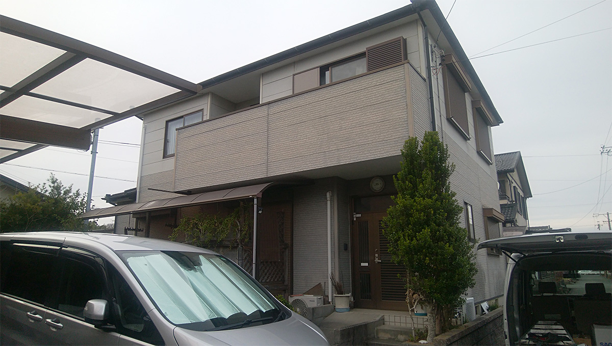 | 施工内容 | ・カラーベスト屋根の塗装サイディング外壁の塗装シーリング工事 ・サイディング目地、軒取り合い、サッシ廻りのシーリング工事 ・シート防水 ・サイディングの破損、クラック、チョーキング等の劣化 ・屋根にタスペーサー設置 |
