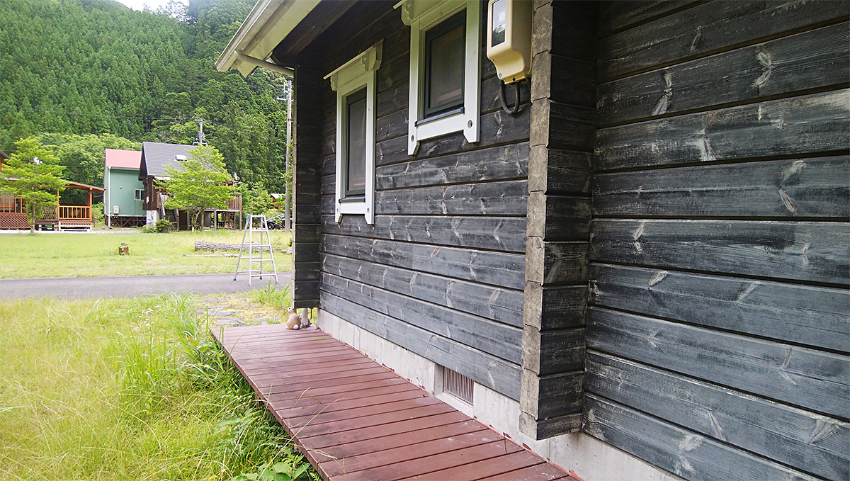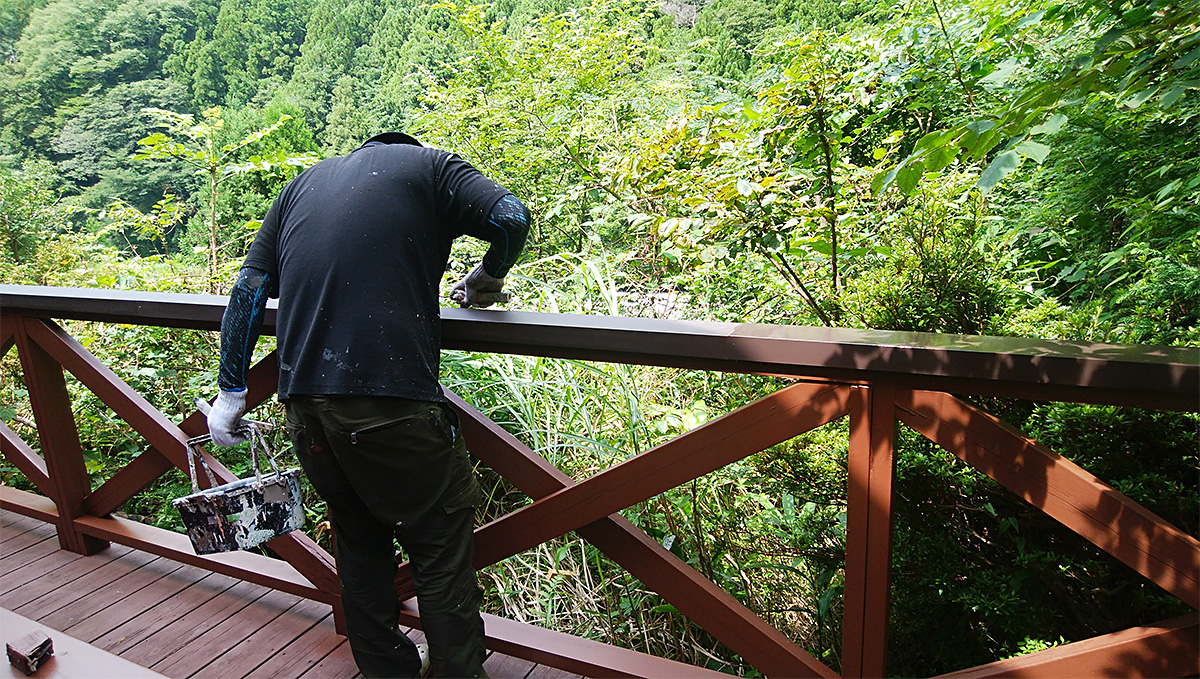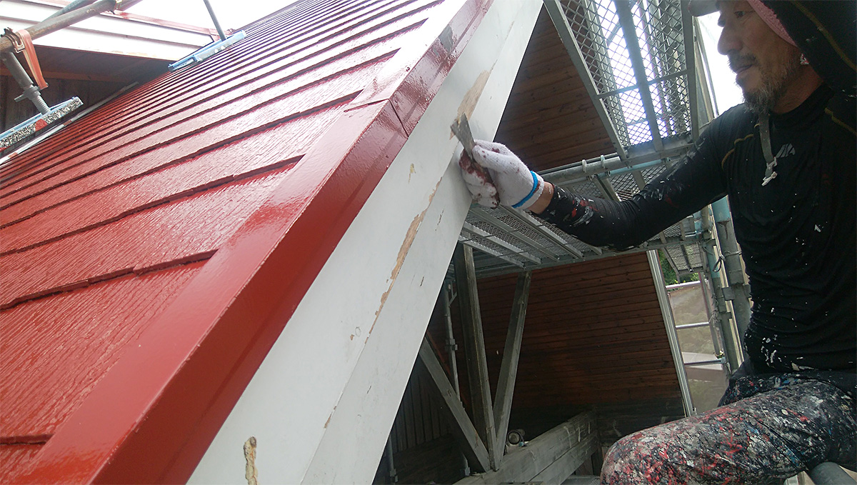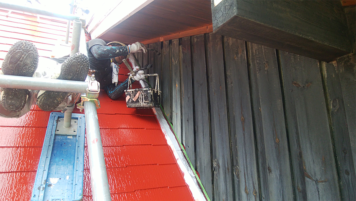 | 施工内容 | ・カラーベスト屋根の塗装タスペーサー設置 ・屋根の破損、クラックの補修 ・キシラデコール、ガードラックによる木部の塗装 ・ウッドデッキの塗装 ・横樋鼻隠しの破損の補修軒天の汚れカビ ・現場まで片道2時間 |
